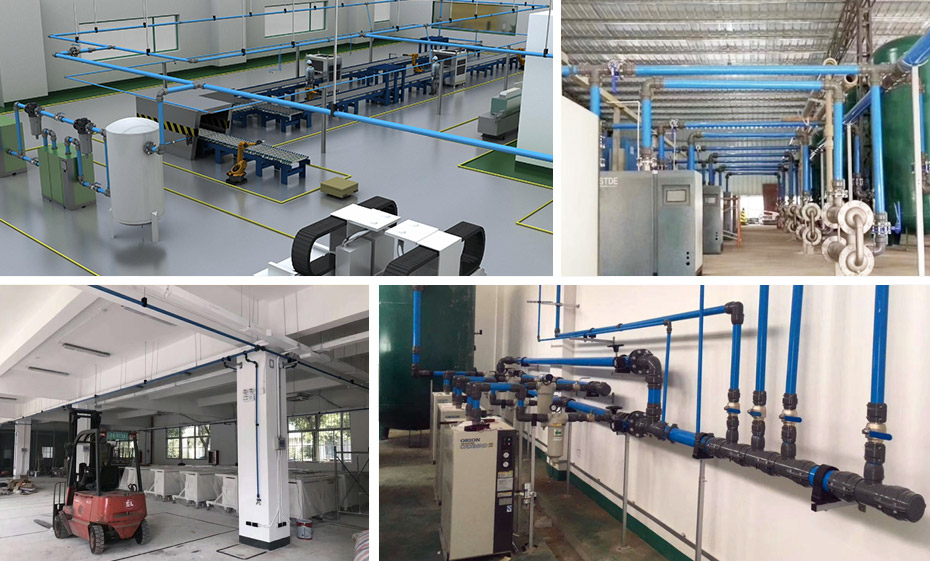 提供不锈钢压缩空气管道,压缩空气铝合金管道,异径直接、铝质异径管对管接头及其他管道系统的配件、安装包的设计、批发、安装、施工等服务;具备大型管路系统项目设计经验,全国施工。